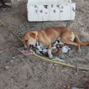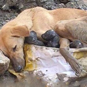 Hidden deep within a patch of roadside brush, a small and fragile family struggled quietly to stay alive. The scene was one of hardship and uncertainty, where a young mother dog and her…