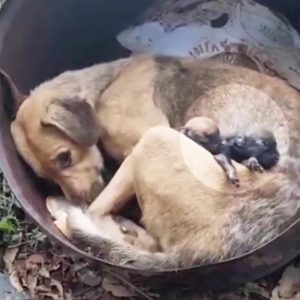 On a cold, rain-soaked afternoon, a mother dog wandered through unfamiliar streets, her small puppy held carefully in her mouth as she searched for safety. She had no shelter to return to, no…