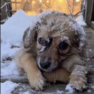 Curled tightly on a frozen porch, a small tan puppy struggled against the harsh winter wind, using what little strength he had just to stay alive. His thin body shook uncontrollably, and his…