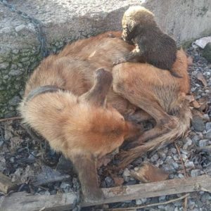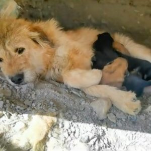 At a deserted construction site, in a shallow hole carved into frozen earth, a mother dog lay curled tightly around her six newborn puppies. Her thin body wrapped around them like a fragile…