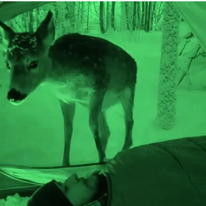Out of curiosity, I decided to set up a night-vision camera to see what happens around me while I sleep in a tent in the middle of the forest